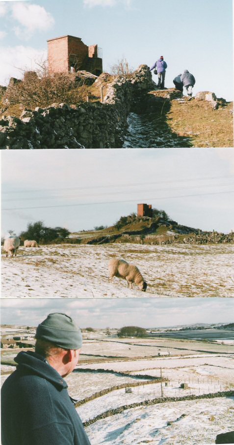Following a call from her, I was able to arrange a meeting with her and with Frank Johnson, the last Head Observer at Brassington, at the post site in March 2004. The tower is still in a reasonable condition although some stabilization of bits of the brickwork is needed and we were able to go to the top of it without too much of a problem. We were fortunate that the visibility was superb and the surroundings, with a powdering of snow, very picturesque !