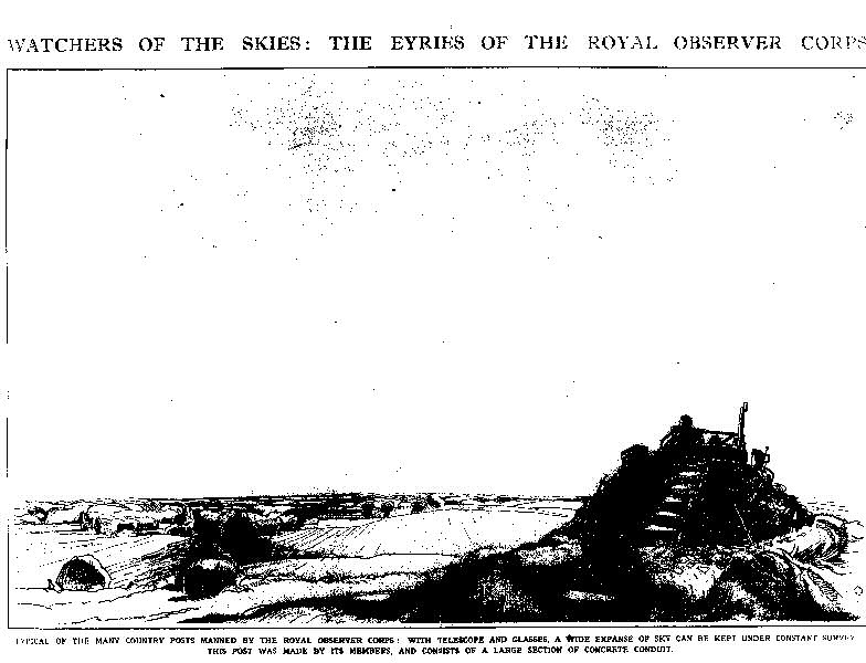 The caption read "One of the most important and least known of our Defence Services - Watchers of the Skies; The Eyries of the Royal Observer Corps".