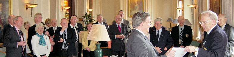 Mike then gave an excellent talk on the history of the ROC and the reasons why he felt that the ROC Badge should be on display within the RAF Club. He then made the presentation of a framed ROC Badge to the Club, along with an ROC 50th Anniversary Commemorative Plate and a special version of the ROC Squadron Print of the wartime Spitfire, 'Observer Corps' 'EB-Z'.