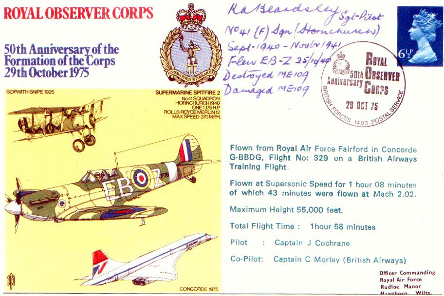 P7666 Spitfire MkIIA EB-Z, while in 41 Sqn at Hornchurch, was the first of possibly 3 Observer Corps Spitfires. One of the Spitfires in the Battle of Britain Memorial Flight was temporarily repainted to represent it (the B.O.B. Spitfires are regularly repainted to represent different aircraft) and it was produced two years ago by Corgi Toys as a model.