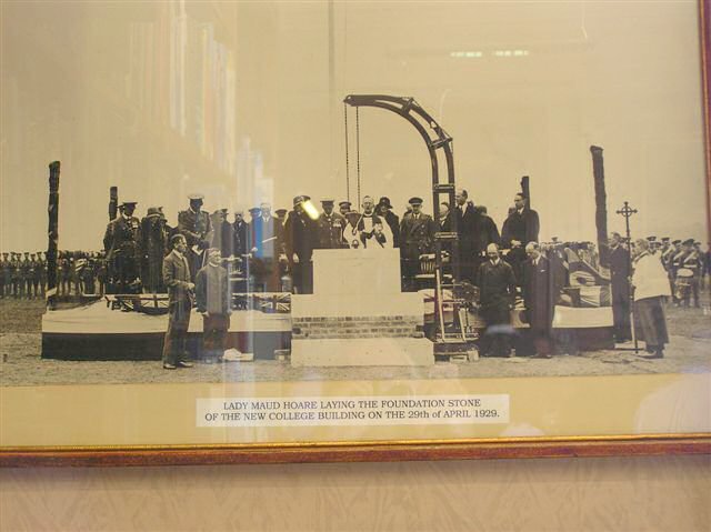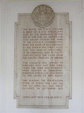 In 1922, it was decided that the RN huts should be replaced by permanent College buildings. The Secretary of State for Air in Stanley Baldwin’s Government was highly supportive. By 1929, plans had been drawn up, the final version of which produced the building which we see today, based on Christopher Wren’s Royal Hospital in Chelsea. The problem was that a general election (which Baldwin was expected to lose) was imminent and so Hoare pulled off what he described as “an act of bluff”. The foundation stone was laid in front of a gathering of worthies by Lady Hoare although no expenditure had been approved for the building. However, the event was noted in the Statute Book and so, when the new Government was formed by Ramsay Macdonald, it seems that approval was assumed and building went ahead.