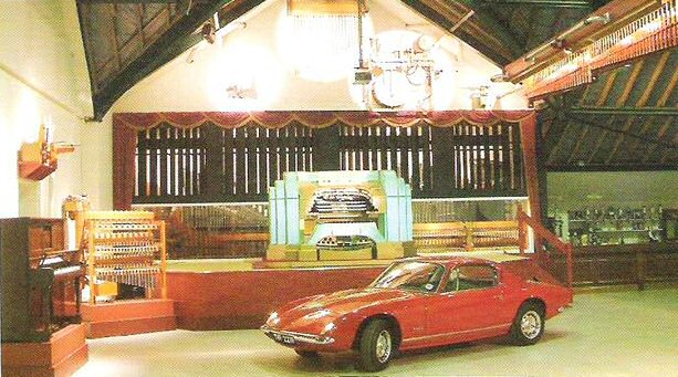 The organ in question started life at the Regal/ABC cinema in Derby before being sold for £200 to an enthusiast in Castle Donnington (that's near to Nottingham East Midlands Airport). In 1990, it was bought by Dave Thorp who transported it to Thorpe, an undertaking which involved nineteen trips in a small van. He had no experience of either removing or rebuilding such an instrument but, over the next ten years, every component was restored. A showroom, designed to accommodate cars, the organ and other curios, was added to the existing garage and a turntable lift was installed (originally from the Birmingham Odeon), together with staging from the Chesterfield Regal.