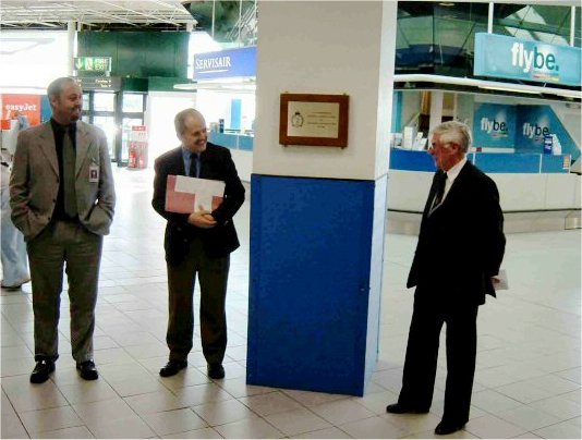 The Plaque had originally been placed on the stairs leading to the then public viewing area. As a result of the extensive rebuilding works at the Airport Terminal a new location was required. To our delight the Airport offered to place the plaque on one of the pillars in the check-in hall. As we wanted the plaque to be a public mark of the service given by members of the Corps, this could not have been better.