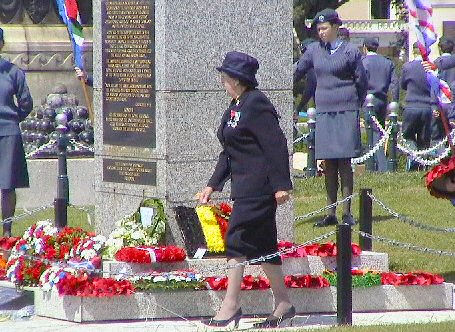 Photos of the Allied Air Forces Monument Service held on Plymouth Hoe on Sunday 27th June 2004. This service is an annual event to honour the 107,000 members of the Royal Air Force, 84,000 members of the USAAF, 42,200 members of the Soviet Air Force and many other airmen and women who gave their lives for freedom. The ROCA wreath was laid by Hon Vice Chairman Joyce Shrubbs. Also present was Hon Vice President Hilary Daniel and National Archivist Edwina Holden as well as many members of 10 Group ROCA.