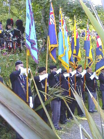 Parade of Standards. Mike Scrimgeour, No 10 Group Standard Bearer, is third