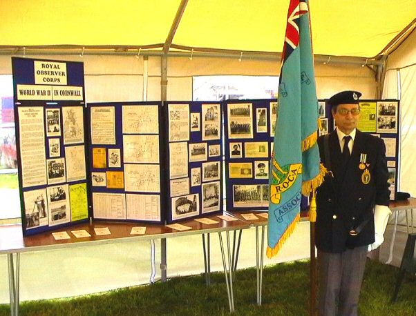 Photo 2 shows the Standard being held in front of the display put together by the Truro Branch ROCA on 'The ROC in WWII in Cornwall'. This was set up in a marquee with a post instrument, head set and post telephone. The display attracted much interest including that from the Mayor of Truro and from quite few former wartime ROC members who had served in the Ops Room in Truro or on the posts. One late seventyish grey haired charming lady took great delight in seeing herself in uniform as a very young girl !!