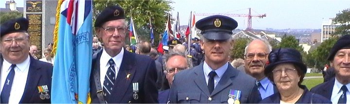 People left to right are Jim Parsonage, Mike Davis (Standard bearer), Mike Bennett, Richard Senior (in RAF Regiment uniform, Richard was formerly the L/Obs on the Truro NRC and has only just returned from the war in Iraq, thankfully safely), Hilary Daniel, Joyce Shrubbs and Murray Harper.