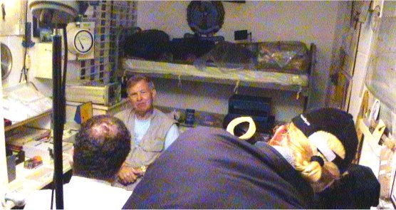 Photo No 1 - Carlton TV came to Veryan Post Museum on 28th July to film for a new TV series to be called 'West Country Top Secret'. The series deals with the Cold War, Regional Seats of Government, secret bunkers etc AND the ROC. Photo shows Lawrence Holmes being interviewed by presenter Duncan Little and being filmed by camerman 'Dave'.