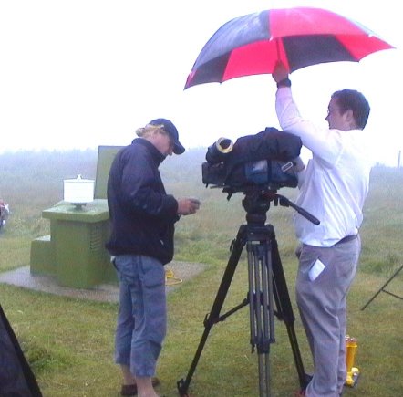Photo No 2 - The day of filming was 'awful' with rain and heavy mist. Most filming was done underground but this photo shows presenter Duncan Little holding the umbrella for camerman Dave near the top of the Post. Filming took some three hours and one wonders how many minutes will be in the final programme ?